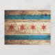 Carte Postale Drapeau de Chicago sur le vieux grain de bois
