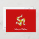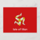 Le drapeau de l'île de Man, ou le drapeau de Mann (Manx : brattagh Vannin), est un triskelion, composé de trois pattes blindées aux éperons dorées, sur un arrière - plan rouge. Il est le drapeau officiel de Mann depuis 1931 et est basé sur les armoiries de Manx, qui datent du XIIIe siècle. Les trois pattes sont connues à Manx comme n'importe quel cassin d'arbre ("les trois pattes"). Le triskelion est un symbole ancien, utilisé par les Mycéniens et les Lycians. On ignore pourquoi le symbole a été adopté à l'origine sur l'île de Man. Avant son adoption en 1931, le drapeau officiel de l'île de Man était le drapeau de l'Union. Il y a aussi une enseigne civile pour l'île de Man. Ce drapeau a été autorisé pour la première fois le 27 août 1971. Un autre drapeau de Manx est le drapeau du Tynwald, qui flotte à l'extérieur des bâtiments législatifs depuis 1971.