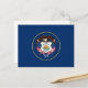 Ce dessin présente le drapeau de l'Utah, un état de l'ouest des États-Unis. Il est bordé par le Colorado à l'est, le Wyoming au nord-est, l'Idaho au nord, l'Arizona au sud et le Nevada à l'ouest. Il touche également un coin du Nouveau-Mexique dans le sud-est. La capitale de l'État de l'Utah est Salt Lake City. Le drapeau de l'Etat de l'Utah est constitué du sceau de l'Utah encerclé dans un cercle doré sur un arrière - plan de bleu marine foncé. Le sceau contient la devise de l'Etat : "Industrie".