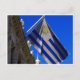 Drapeau de l'Uruguay. Le drapeau national de l'Uruguay (Pabellón Nacional) a un champ de neuf bandes horizontales égales alternant blanc et bleu. Le canton est blanc, chargé du soleil de mai, d'où s'étendent 16 rayons, alternant entre triangulaire et ondulé. Le drapeau a été adopté pour la première fois par la loi le 16 décembre 1828, et avait 19 bandes jusqu'au 11 juillet 1830, quand une nouvelle loi a réduit le nombre de bandes à neuf. Les bandes horizontales sur le drapeau représentent les neuf départements d'origine de l'Uruguay. Le premier drapeau, conçu en 1828, avait 9 rayures bleues claires ; ce nombre a été réduit à 4 en 1830 avant la proclamation de la première Constitution du pays. Le Soleil de Mai représente une nouvelle nation dans le monde.