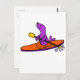 Carte Postale Drôle de phoque violet Kayaking Cartoon