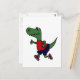 Merveilleux t-rex dinosaure jogging en chemise rouge et short basket et bleu. Super idée cadeau. Peut également ajouter du texte personnalisé et modifier la couleur de l'arrière - plan lors de la commande.