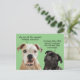 Ces deux chiens (un bouledogue américain et un pug noir) discutent pourquoi tous les humains portent des muselières (c.-à-d. : masques). Leur réponse ? Ça doit être parce que les humains n'ont pas encore appris les commandes assis et reste. Carte drôle et mignonne qui fera sourire tous ceux qui ont porté le masque et se sont confinés chez eux pendant cette pandémie. Toutes les couleurs du texte et du fond sont personnalisables.