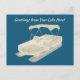 Vous passez vos vacances à bord de votre ponton ? Envoyez vos propres cartes postales personnalisées à votre famille et à vos amis. Ces cartes postales illustrent un bateau à ponton dans les tons bronzés et crème contre un arrière - plan bleu marine avec votre propre salut en haut en écriture. Le dossier vierge est prêt pour votre propre message manuscrit ou un message imprimé ou une illustration personnalisée.