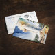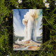Cette carte postale présente une aquarelle du geyser Old Faithful dans le parc national de Yellowstone.
