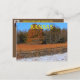 Une photo d'un paysage automne/hiver du Kansas avec ciel bleu, neige, herbe des Prairies et un arbre avec feuilles d'automne qui est au nord de Hutchinson Kansas dans le pays. C'est sur une carte postale.