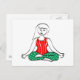 T-shirts de yoga, cartes et cadeaux pour Noël et les Fêtes. Photo d'une femme en pose de yoga assise portant des vêtements à motifs rouges et verts de Noël. Ajoutez du texte pour personnaliser ces produits de vacances yoga.