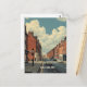 Carte postale rétro de Dublin, l'Irlande capture les rues animées de la ville, l'architecture classique et l'atmosphère intemporelle dans des tons chauds et nostalgiques.