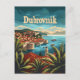 Dubrovnik, Croatie, est une magnifique représentation nostalgique de son architecture médiévale bien préservée et de ses paysages côtiers spectaculaires. Le design capture les murs emblématiques de la ville, les toits en terre cuite et les eaux azurées de la mer Adriatique. Rendu dans un style vintage, l'oeuvre évoque la beauté intemporelle et la grandeur historique de Dubrovnik, invitant ses visiteurs à découvrir ses rues enchanteresses et son riche patrimoine culturel.