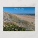 Plage dunes barrière en bois. Carte postale de Praia de Faro (Faro Beach), Algarve, Portugal