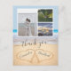 Carte postale Merci mariage plage. Avec un collage photo 3, Deux coeurs dans le sable, turquoise arrière - plan bleu