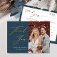 Dusty Blue Elegant Gold Script moderne photo minimaliste Merci Postcard Mariage. Express combien vous êtes reconnaissants à vos amis et votre famille qui ont fait de votre mariage un spécial supplémentaire avec ce magnifique carte de remerciements photo mariage. Tous les textes sont pré-arrangés pour que vous personnalisiez facilement et rapidement avec vos propres mots.