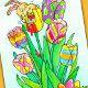 In this cute Easter illustration, a tiny easter bunny sits in a tulip, painting it with easter egg patterns. Around it are other tulips he has already painted in colorful stripes, dots and waves. Send this cute card to friends and family to wish them a Happy Easter.