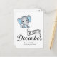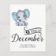 Adorable petit garçon éléphant avec pois bleu, typographie "Dû en Décembre", et modèle pour message spécial annonçant la grossesse.