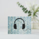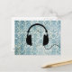 Une silhouette d'écouteurs sur un arrière - plan damassé vintage bleu.