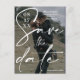 Un script moderne et simple en gras en blanc sur la superposition noire enregistrer le mariage date, ajoutez votre photo.