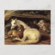 Une belle impression de "The Arab Tent" une peinture à l'huile sur toile réalisée en 1866 par le peintre anglais Sir Edwin Henry Landseer, RA. Découpé en 1850, sir Edwin Henry Landseer, RA était un peintre et sculpteur anglais bien connu pour ses peintures d'animaux et en particulier de chevaux, de chiens et de cerfs - ses oeuvres les plus connues sont les sculptures de lions dans le Carré Trafalgar. Le fils du graveur John Landseer A.R.A., Edwin Henry Landseer (1802-1873) est né à Londres. Landseer était quelque chose d'un génie dont les talents créatifs étaient reconnus tôt. Il a étudié sous plusieurs artistes, dont son père, et le peintre d'histoire Benjamin Haydon. Haydon a encouragé le jeune Landseer à effectuer des dissections afin de bien comprendre la musculature animale et la structure squelettique. En 1815, à l'âge de seulement 13 ans, Landseer expose son travail à l'Académie royale et à l'âge de 24 ans est élu un associé là-bas et un académicien en 1831. Plus tard, en 1866, Landseer est élu président mais refuse l'offre. On pense qu'à la fin des années 30 Landseer a subi une dépression nerveuse significative qui l'empoisonnerait le reste de sa vie avec des épisodes récurrents de mélancolie, d'hypochondrie et de dépression. Pendant les dernières années de sa vie, la stabilité mentale de Landseer fut un défi, et à la demande de sa famille, il fut déclaré fou en juillet 1872.