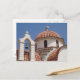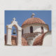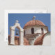 Photographie d'architecture prise en Crète, Grèce. Vue pittoresque d'un haut d'église avec cloche et toit en forme de dôme avec ciel bleu sans nuages derrière. Une jolie carte postale d'église, religieuse ou pas.