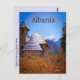 Cette carte postale représente l'église catholique de Theth qui est située dans le petit village de Theth dans le comté de Shkodër en Albanie. Elle est située parmi les sommets des montagnes de Shala et peut être inaccessible pendant les mois d'hiver. L'église était l'un des premiers bâtiments de la région et tout au long de son histoire, elle a également été utilisée comme école et centre de santé. Depuis, l'église a été reconstruite et est actuellement en plein service pour le village. Crédit photo : Marsel Hasanllari, 2022.