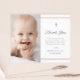 Moderne Elegance Girls Baptism Merci est une carte postale moderne et propre avec des rayures roses douces et une croix avec photo sur le devant. Le dos est une carte postale. Type personnalisable gris vous permet de modifier toutes les informations de la carte à votre goût. Parfait pour un baptême de petites filles.