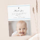 La carte de remerciements de baptême à rayures classiques est une carte postale moderne et propre avec des rayures bleues douces et une croix avec photo sur le devant. Le dos est une carte postale. Type personnalisable gris vous permet de modifier toutes les informations de la carte à votre goût. Parfait pour le baptême d'un petit garçon.