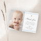La carte de remerciements de baptême à rayures classiques est une carte postale moderne et propre avec des rayures bleues douces et une croix avec photo sur le devant. Le dos est une carte postale. Type personnalisable gris vous permet de modifier toutes les informations de la carte à votre goût. Parfait pour le baptême d'un petit garçon.
