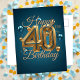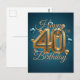 Carte Postale Élégant Chic Ballons Bleus et Dorés 40e Anniversai