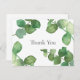 Eucalyptus feuille carte postale de remerciement d'affaires, avec des feuilles délicats d'aquarelle d'eucalyptus encadrant votre message de remerciement dans un texte chic en ardoise gris. Ce design élégant est idéal pour un large éventail d'entreprises, y compris les salons spa cheveux et maquillage stylistes boutiques esthéticiennes et fleuristes.