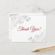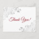 Ces belles cartes postales sont une façon merveilleuse et économique de remercier vos invités mariages d'avoir fait partie de votre journée spéciale. L'avant présente des boucles et des tourbillons en faux feuille argent fantaisie dans les coins avec un script rouge crimson en lisant "merci" sur un arrière - plan blanc classique. L'arrière a de l'espace pour une note et une signature courtes. Belle fin à un nouveau commencement.