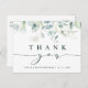 Cette carte postale de remerciement est composée d'eucalyptus à l'aquarelle peinte, de vert botanique et de feuilles bleu clair avec calligraphie moderne. Parfait pour les mariages, anniversaires, diplômes et autres événements.