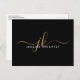 Carte Postale Élégant Noir Monogramme Initiales de script
