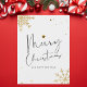 Cette belle carte postale de Noël présente un design élégant noir et blanc, orné d'étoiles dorées et de flocons de neige étincelants. La calligraphie élégante de "Joyeux Noël" ajoute une touche moderne et sophistiquée, parfaite pour envoyer des voeux de vacances chaudes. Que vous fêtiez en famille ou que vous envoyiez des salutations de loin, cette carte postale est un moyen étonnant de répandre la joie de la saison.