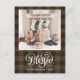 Envoyez des voeux de vacances personnalisables et personnalisés à vos amis, collègues et famille dans des cartes de style simple, chic, élégant et moderne design photo festif, naturel minimaliste! Une belle calligraphie de cadres " Bienheureux " sur le fond de votre photo en face. Ci-dessous, la calligraphie présente votre message de bienvenue personnalisé de votre nom de famille dans la typographie moderne. Reverse pour révéler un bel arrière - plan motif plaid brun foncé.