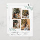 Notre carte photo de vacances élégant est idéal pour tous ceux qui recherchent une façon unique de souhaiter à leurs proches des vacances heureuses grâce à une carte élégante et élégante avec leur propre photo. Le design est chic, élégant et unique. Il présente un collage de 4 photos personnalisables dont deux dans un cadre blanc élégant. Le texte de l'élégant script est placé en bas avec votre nom de famille et l'année en cours en lettres élégantes. De beaux feuilles d'eucalyptus décorent la carte pour une touche botanique. Utilisez le bouton "personnaliser" pour remplacer le modèle par vos propres photos, et entrez votre nom et l'année en cours. Souhaitez un Joyeux Noël d'une manière unique!