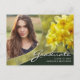 Une carte de vœux de remise de diplômes personnalisée unique, avec des éléments de design d'écriture manuscrite élégante et un texte moderne. La photo du diplômé est mise en valeur par de belles fleurs jaunes sur un fond vert forêt. Le verso de la carte propose des espaces de texte personnalisables pour des informations sur la remise de diplômes et le parcours futur. Pour voir d'autres articles similaires, visitez ma boutique ici sur "www.Zazzle.com/LakeViewCardCo". Merci