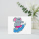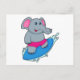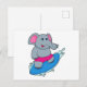 Carte Postale Éléphant surfeur avec planche de surf