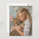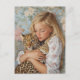 Une jeune fille blonde embrasse avec amour un léopard, ses yeux fermés dans un moment serein de confiance et de connexion. L'arrière - plan présente un motif floral délicat qui ajoute à l'atmosphère onirique.