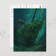 Une épave recouverte d'algues se trouve sur le fond de l'océan, baignée par une lueur étrange.