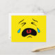 Ce triste petit visage d'émoticônes est en train de passer une mauvaise journée. Face en pleurant avec un arrière - plan jaune vif.