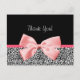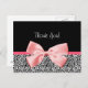 Dites merci avec cette carte postale de remerciement en noir et blanc avec un empreinte de léopard et un joli ruban rose attaché dans un arc. Vide sur le dos.
