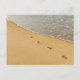Carte Postale Empreintes de pieds dans le sable avec vague