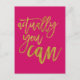 Donnez un coup de pouce à quelqu'un et envoyez-lui une carte postale avec un message d'encouragement! Ceci a des mots de motivation Réellement vous pouvez en or contre un arrière - plan rose chaud qui peut être changé en une couleur différente si vous le souhaitez.