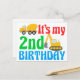 Carte Postale Enfant garçon 2ème anniversaire engin de construct