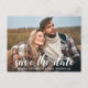 Enregistrer La Date Moderne Fiançailles Couple Photo Carte Postale Blanc Script