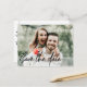 Célébrez votre fiançailles et préparez la scène pour votre prochain mariage avec notre carte postale "Enregistrer la date manuscrite Fiançailles photo de script". Cette carte postale magnifiquement conçue vous permet de partager l'excitation de votre moment spécial avec vos amis et votre famille d'une manière personnalisée et mémorable. Doté d'une écriture manuscrite élégante, cette carte postale est la toile parfaite pour présenter votre photo fiançailles préférée. Que vous préfériez l'élégance intemporelle d'une photo en noir et blanc ou l'énergie vibrante d'une photo couleur, ce design complète votre image avec grâce et sophistication. Personnalisez le texte pour inclure vos détails mariages, faisant de chaque carte postale un faire-part unique de votre amour et de la célébration à venir. Cette carte postale Save the Date est plus qu'une simple faire-part ; c'est un souvenir que vos proches vont chérir, capturant la joie et l'anticipation de votre journée spéciale. Que vous planifiez une grande fête ou une aventure intime, cette carte postale Save the Date est un excellent moyen de créer de l'excitation et de partager votre joie. C'est le reflet de votre histoire d'amour et du merveilleux voyage que vous êtes sur le point de faire en couple. Si vous avez besoin d'aide pour customiser cette carte postale ou si vous avez des besoins spécifiques en matière de design, n'hésitez pas à communiquer avec nous. Nous sommes ici pour aider à faire de votre annonce Save the Date une annonce aussi parfaite que votre histoire d'amour. Commandez maintenant et faites le premier pas vers votre jour de mariage avec notre Carte Postale Photo Fiançailles Save the Date manuscrite Script Save the Date, un beau départ pour votre éternité.