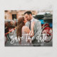 Script De Brosse Moderne Enregistrer La Date Fiançailles Couple Photo Carte Postale - Script Blanc