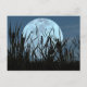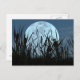 Cette carte postale présente Cattails et un visiteur de Dragonfly, presque silhouetté contre une grande pleine lune. Un composite de photos originales créé ce soir d'été idyll.