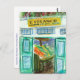 Un panneau jaune marque l'entrée du marché de Pike Place. A travers les portes vertes, un stand de produits est visible. Des fleurs colorées descendent en cascade d'un planteur au-dessus de la porte. Rendu en acrylique et pastel sur papier. Personnalisez ce produit avec votre propre texte et images en utilisant le bouton "Customiser" !