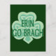 Ce design irlandais présente la légende "Erin Go Bragh" en texte vert foncé sur un shamrock de noeud celtique dans plusieurs tons de vert, et est un excellent design pour les célébrations de la Saint Patrick.