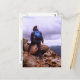 Cette carte postale présente une photographie d'art d'un randonneur sur le sentier Edmunds qui s'approche du sommet rocheux du mont Eisenhower dans les Montagnes Blanches du New Hampshire. Jusqu'en 1972, cette montagne était connue sous le nom de Mt Pleasant. Il a été rebaptisé par la législature de l'Etat NH en l'honneur de l'ancien président. Le sommet est ouvert avec une vue à 360 degrés. Le pic est situé au milieu de la chaîne présidentielle du sud, entre Monroe au nord et Pierce au sud, au-dessus de Crawford Notch. Le mont Washington se dresse au loin avec un ciel gris orageux.